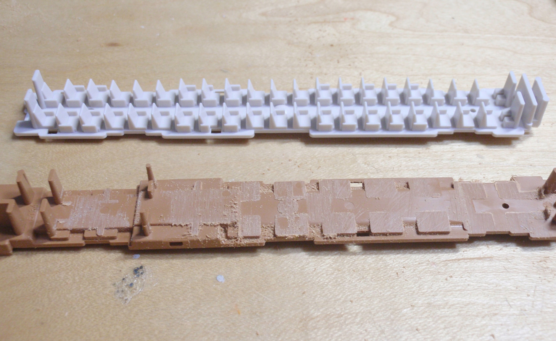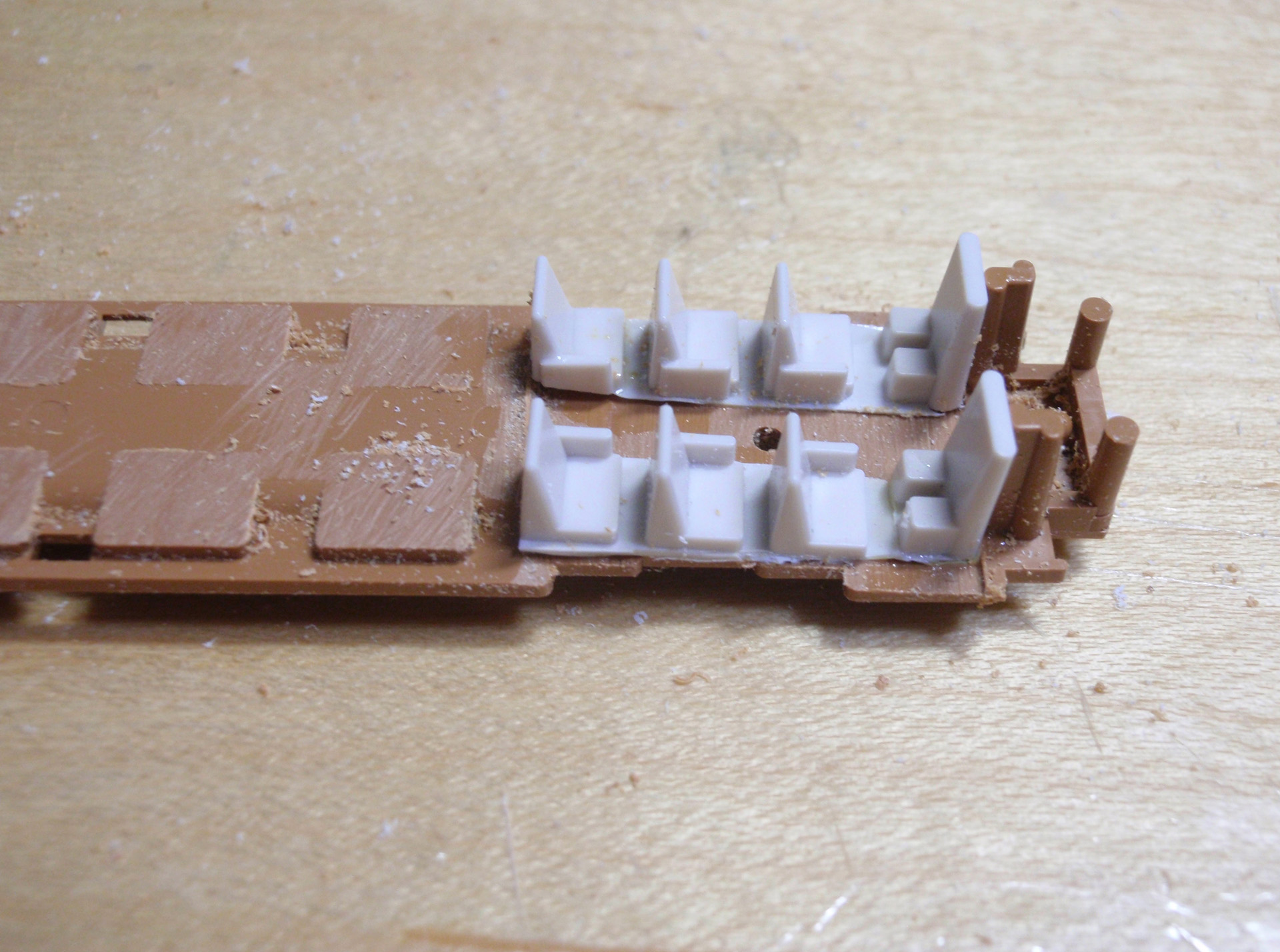 いろいろ考えた結果、スハフ42の室内を基準にした方が、話が早いので、座席部分を荒いヤスリでガリガリと削ってしまいました。