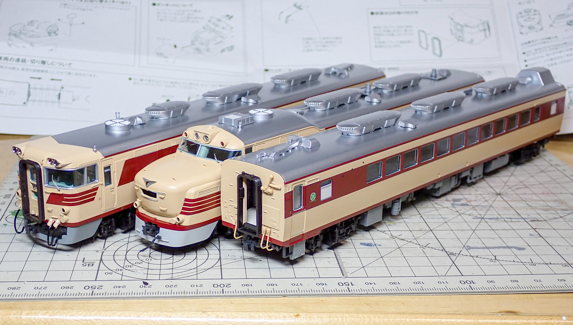 キハ82にも、一通りパーツを取り付けました。パーツが付くと、ぐっと生き生きしてくるので、ワクワクします。この彫りの深さはとても良いですね。Nゲージでは出てこない部分と思います。