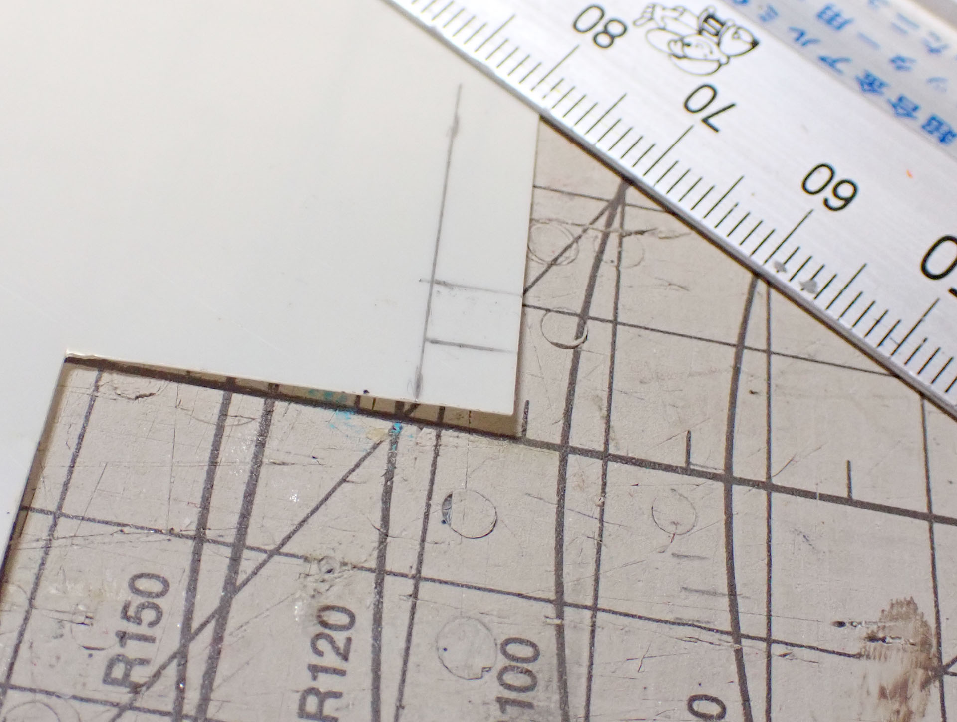 170号機以降の特徴である、機器室の中央の窓がHゴム化されている、という特徴を表現するために、0.1mm厚のプラバンを切っているところです。極論、ここさえ出来ていれば良い、くらいの気持ちで取り組んでいます。