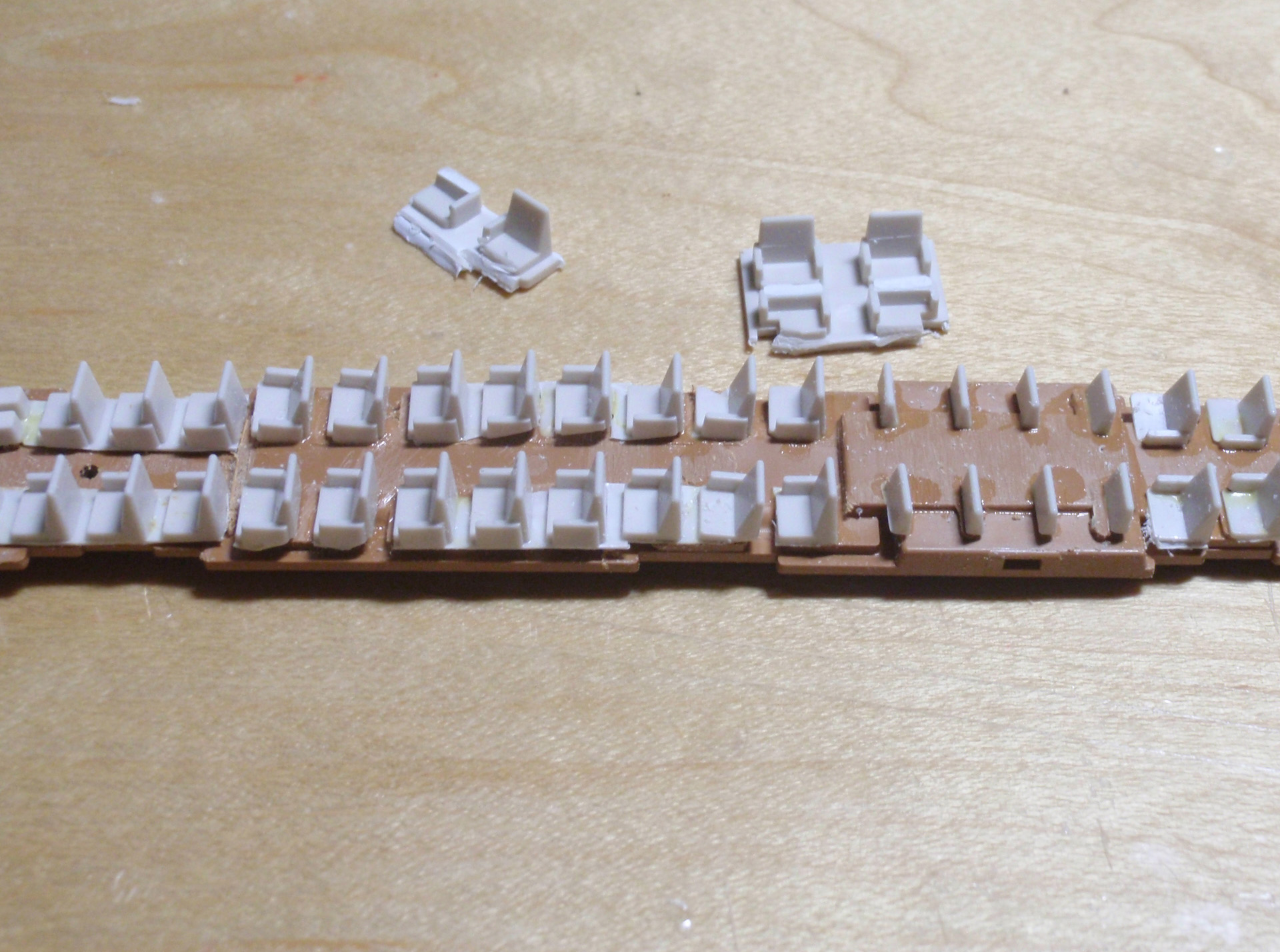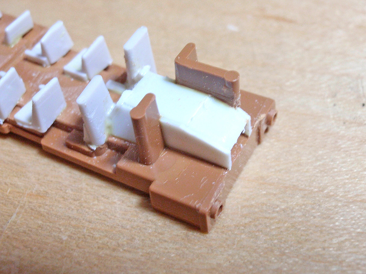いろいろ考えた結果、スハフ42の室内を基準にした方が、話が早いので、座席部分を荒いヤスリでガリガリと削ってしまいました。