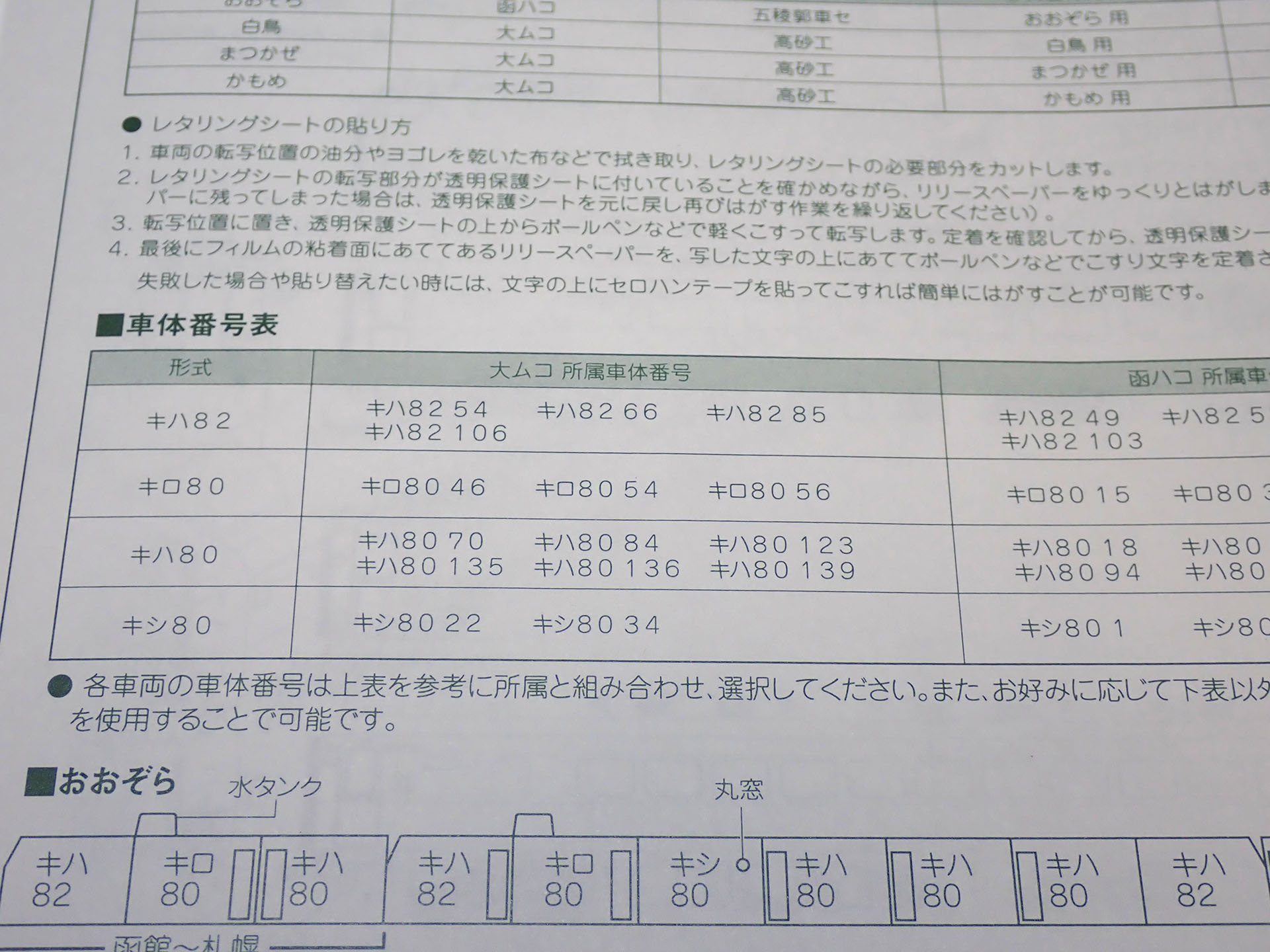 最後にインレタ類をはるわけですが、説明書に参考の車番が記載されていますので、こちらにのっとり大ムコ所属の車番を選びました。このような資料は本当にありがたいです。