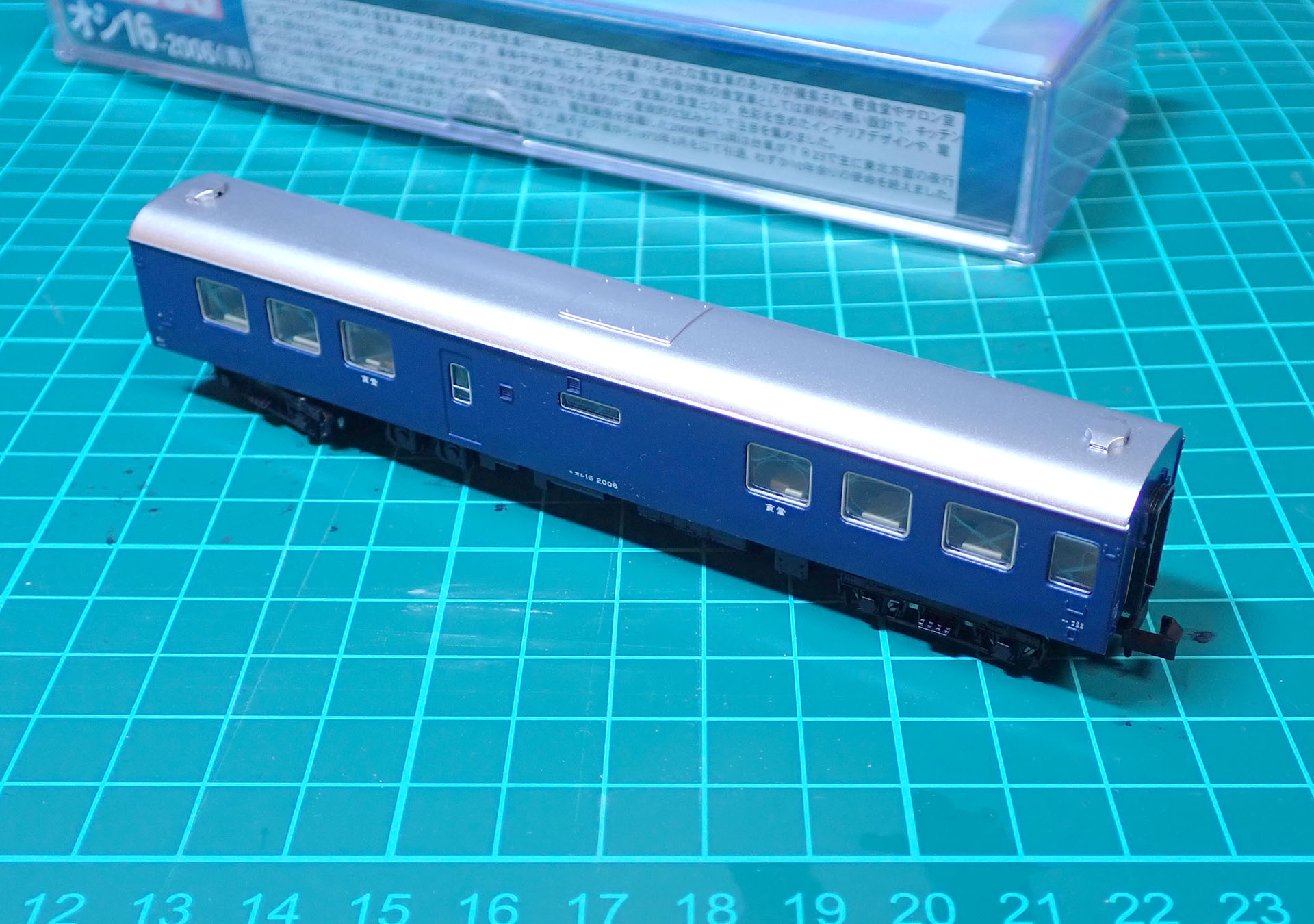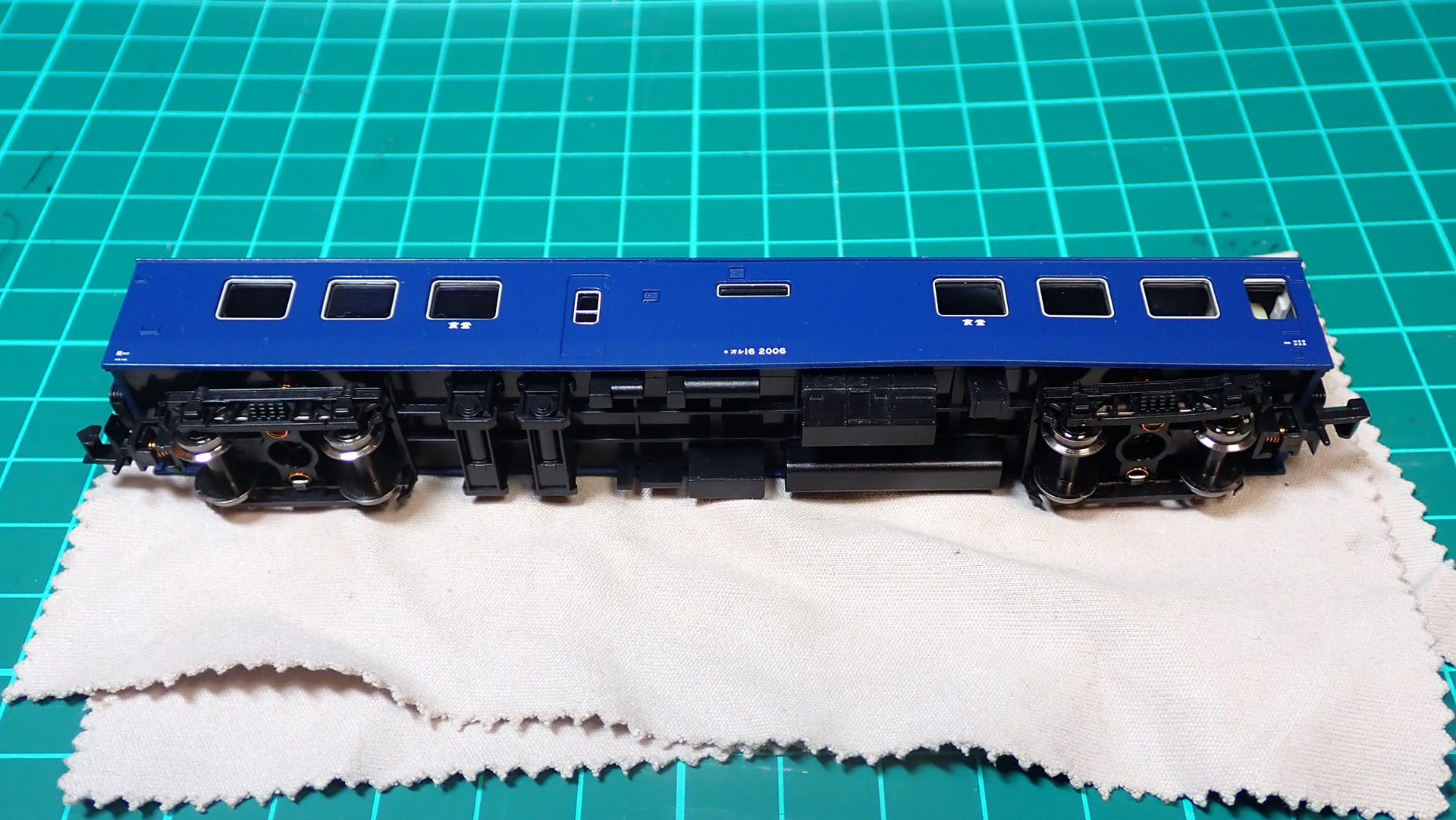 わかりやすい例では、KATOのグリーン車の室内が、よく赤系で成形されており、室内灯を仕込むと窓から赤い光が漏れるのですけど、個人的にはこれが気になるので、雑でもいいから塗分けるようにしています。