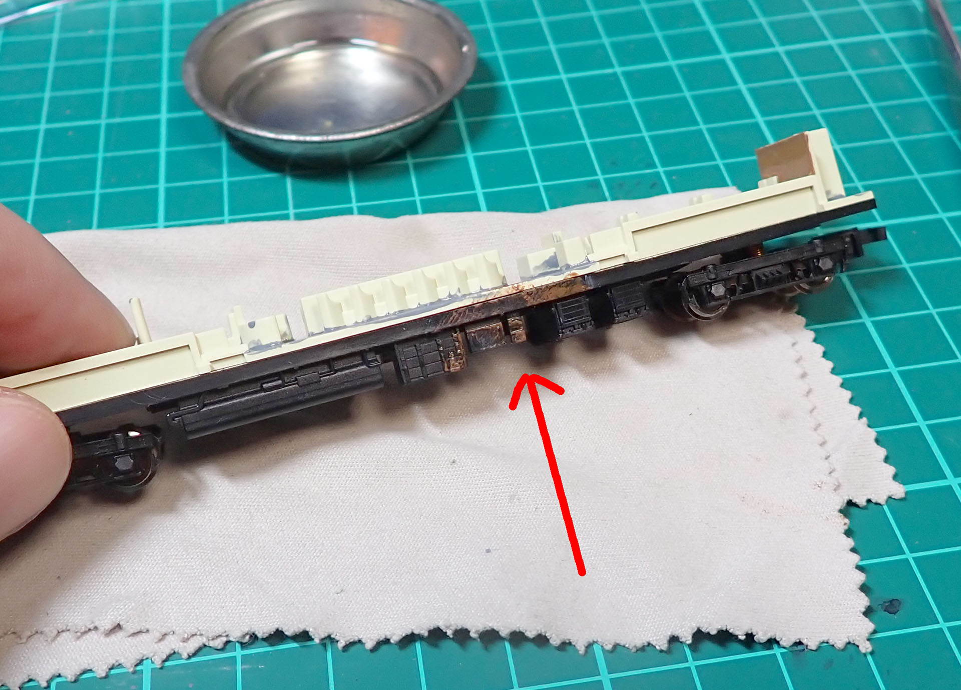 床下機器にべったりと茶色の塗料がついてしまいました。しかも指紋まで!さあこまった。
