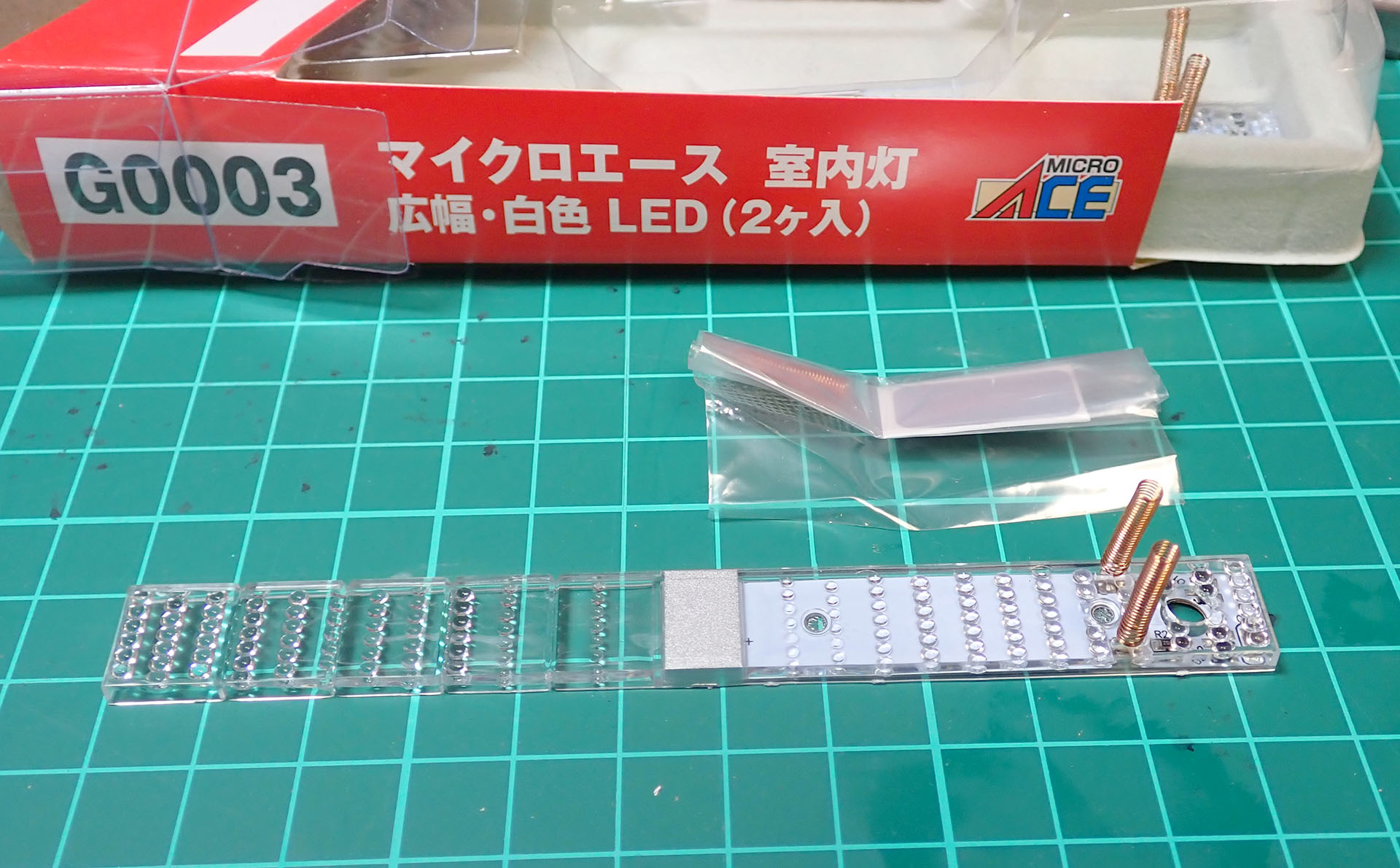 今回は一両なのと、MicroAceの室内灯を買ったことがなかったので、お試しで、純正品をつけてみることにしました。予備のバネや照度を安定させるためのシールが付属しているのが、よいと思いました。