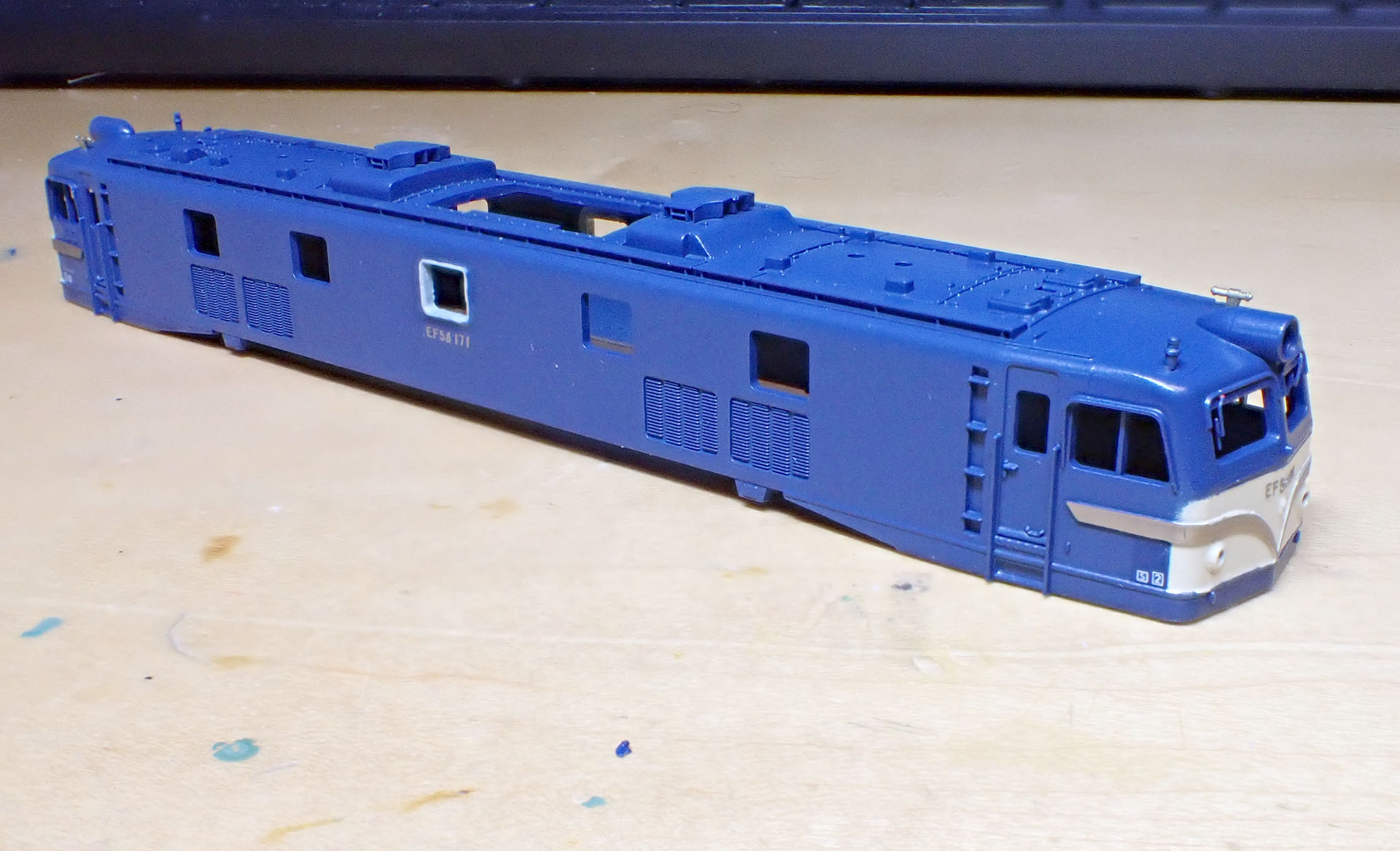 知るとと欲しくなるもので、一つお手軽に改造してそれっぽいものに仕立てる事にしました。ベースは中古で買ったEF58ですが、それなりに新しいロットのものです。